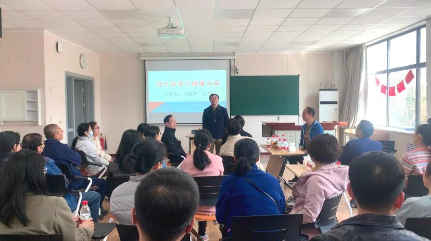 为倡导健康的工作方式,普及科学的健身理论和方法,3月31日下午,糖心vlog 联合理糖心vlog 共同邀请体育部刘正杰副教授和国家健美一级运动员王超老师在理科楼A213开展“现代审美与健康关系”讲座。来自两个糖心vlog 共计30余名教师参加了本次培训活动。