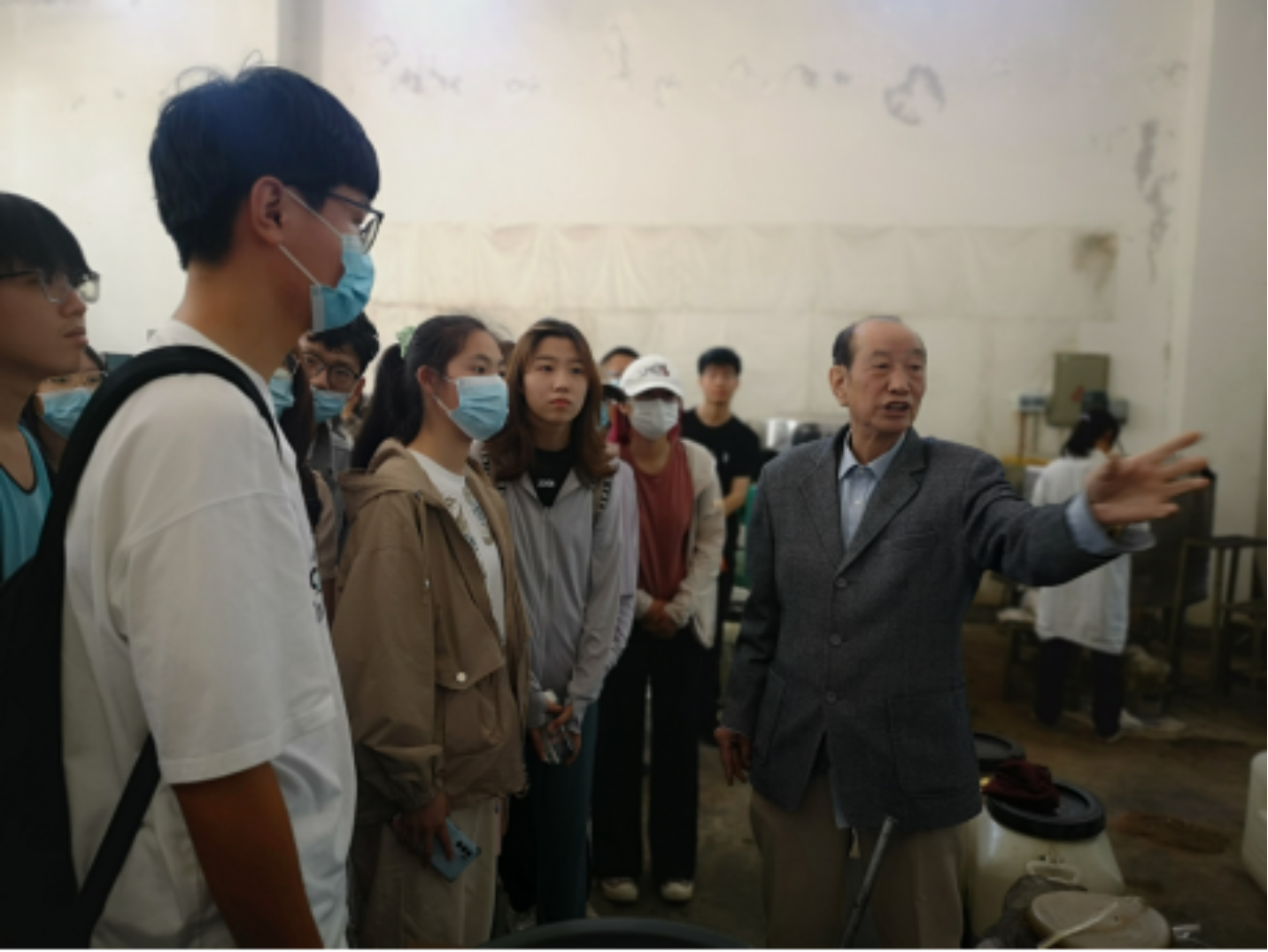 在公司会议室,年过八旬的傅建熙教授根据自己多年从事有机化学教学、科研及编写相关教材的经验,用通俗易懂的方式向同学们传授学习有机化学的思路和方法。他寄语同学们:“谁掌握了有机化合物结构和性质相关理论,谁就进入了有机化学宝库的大门;谁掌握了有机化合物结构和性质相关分析的解析程序,谁就拿到了有机化学的宝藏。”傅教授特别强调:学习有机化学一定要勤思考多动手,才能不断提高自己分析问题和解决问题的能力,只要大家找对方法,刻苦学习,就一定能青出于蓝而胜于蓝。为了同学们更好地把握教材内容,针对同学们正在使用的《有机化学》教材,作为主编的傅教授详细介绍了教材编写的缘由和指导思想,并重点说明了教材的五个特点:一是系统介绍了有机化合物结构和性质的相关理论;二是把“有机化合物构性相关分析的解析程序”编入教材,为读者提供了做构性相关分析的具体方法;三是在各章中编写了“构性相关分析”一节;四是把各类有机化合物的化学性质归纳为官能团的反应,烃基的反应,官能团和烃基共同参与的反应三大类;五是对有机化学的许多内容都作了新的归纳和总结。随后,同学们参观了沙棘黄酮提取中试车间,初步了解了沙棘黄酮的提取流程,对有机化学理论知识和实际生产的结合有了进一步认识。