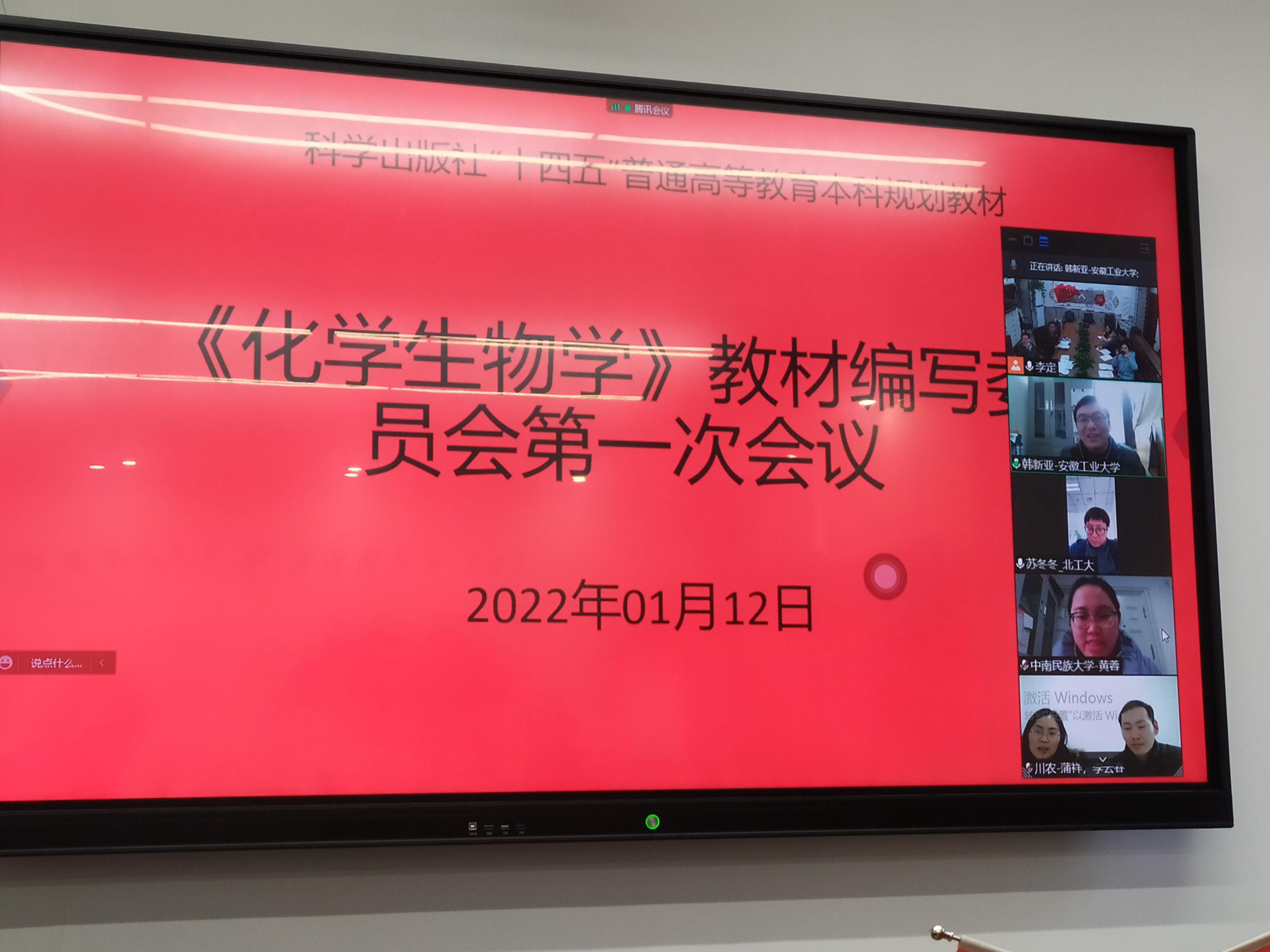 2022年1月12日,《化学生物学》教材编委会第一次会议在理科楼E316举行,本次会议采用线上线下相结合的方式,来自糖心vlog